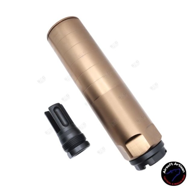 AIRSOFT ARTISAN REX STYLE DUMMY SILENCER WITH 3 Prong FLASH HIDER ( 14MM CCW )