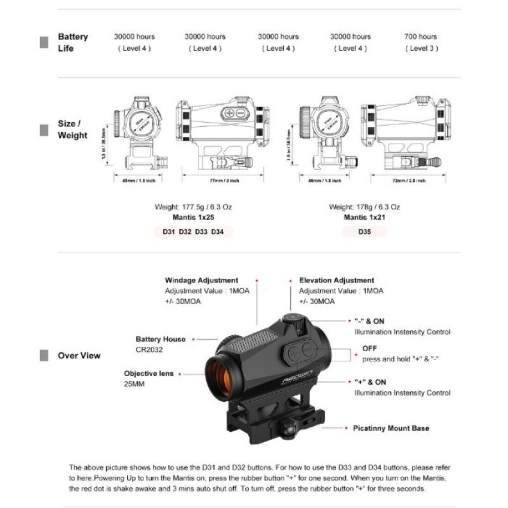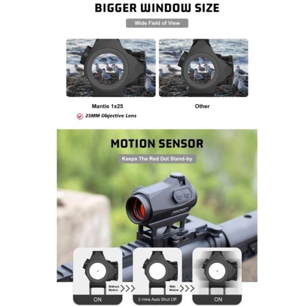 Red Win Mantis 1x25 Red Dot Reflex Sight MOS Shake Awaked 3MOA Picatinny QD Mount
