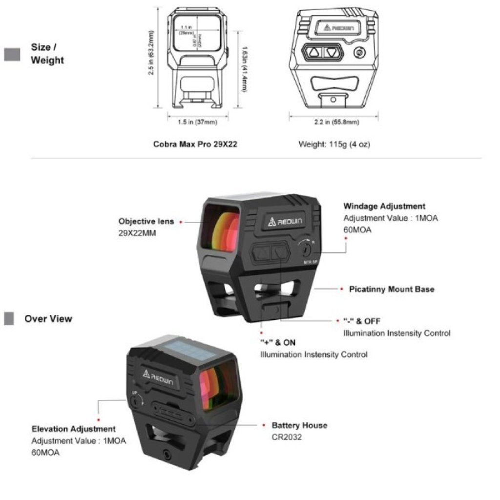 REDWIN Cobra Max Pro MTR 29X22 Reticle Reflex Sight