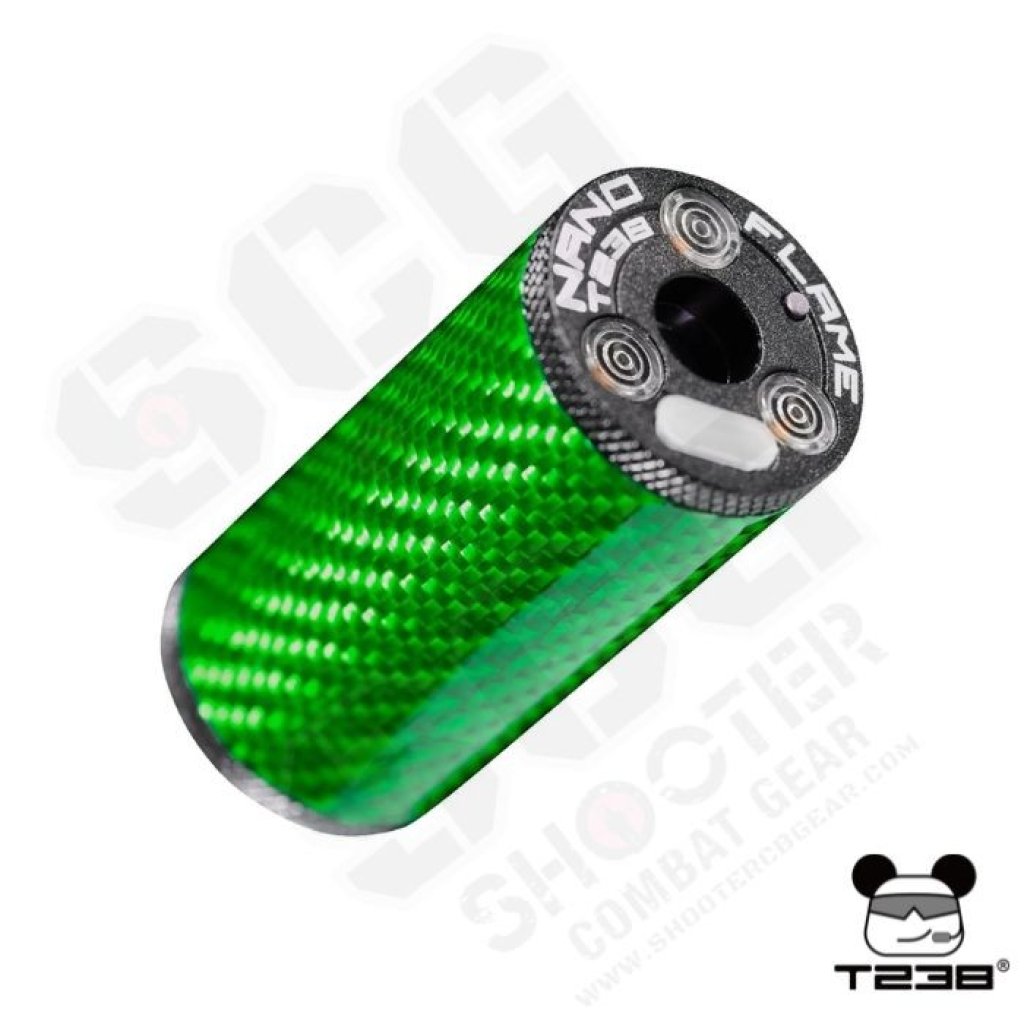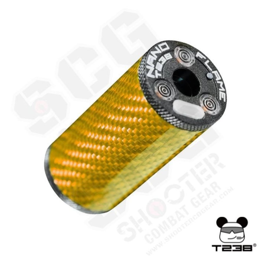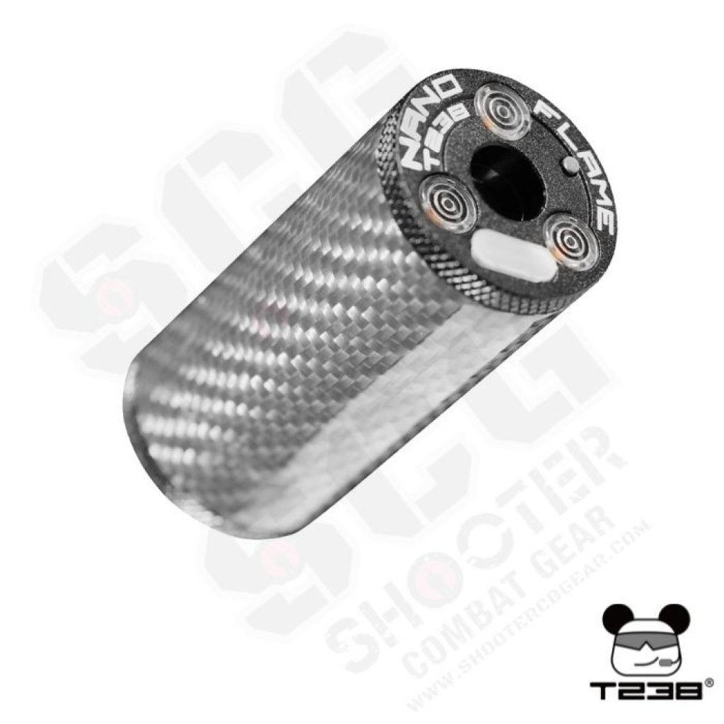 The T238 NANO FLAME Tracer Unit delivers premium durability with its aircraft-grade aluminum and carbon fiber body. Featuring 9 color options and a flame simulation mode for realistic night-game effects, it also offers a customizable auto-shutdown timer (up to 120 minutes) for stealth. The upgraded 600mAh battery ensures long runtime with fast USB-C charging, while durable 14mm CCW threading and a free 14mm CCW to 11mm CW adapter maximize compatibility.