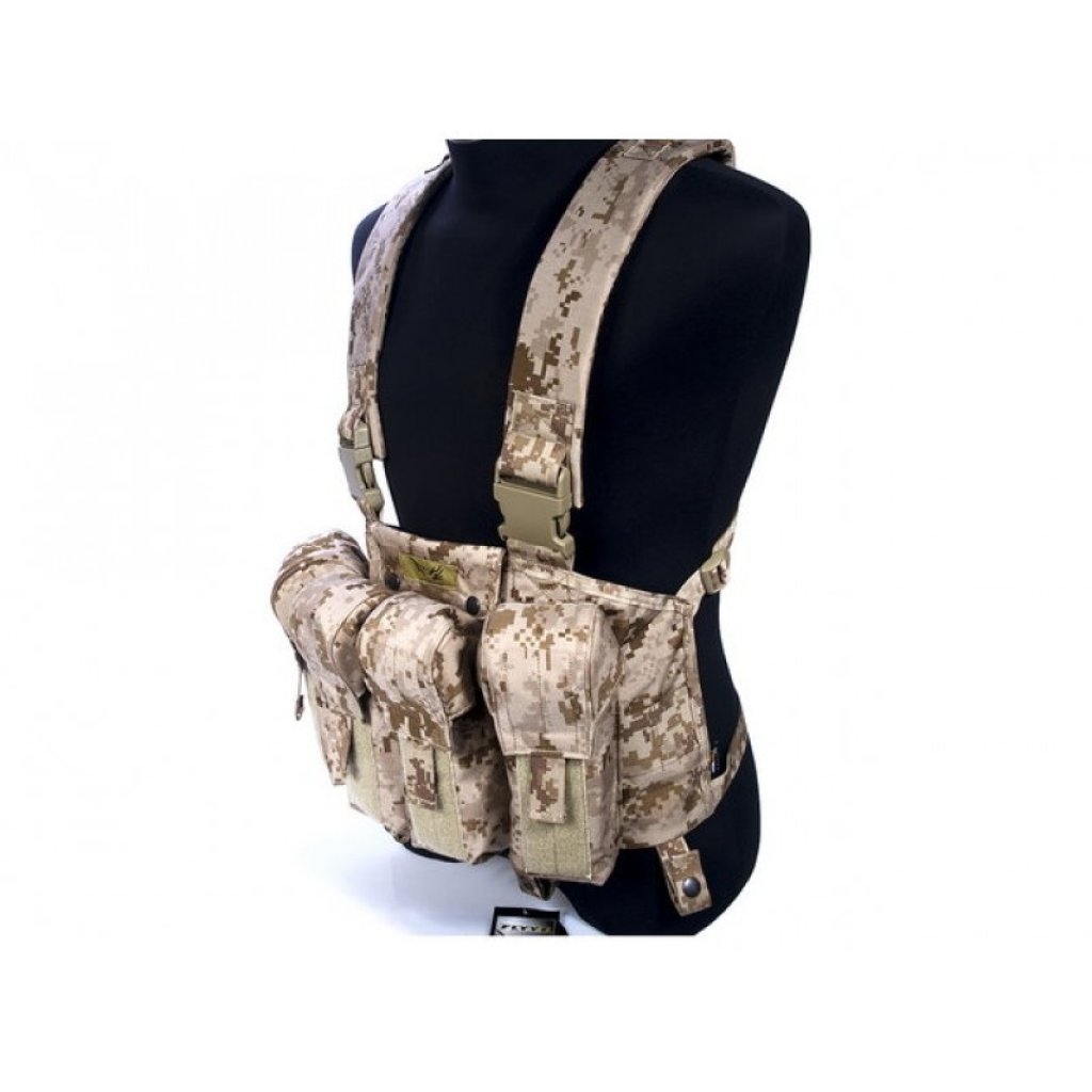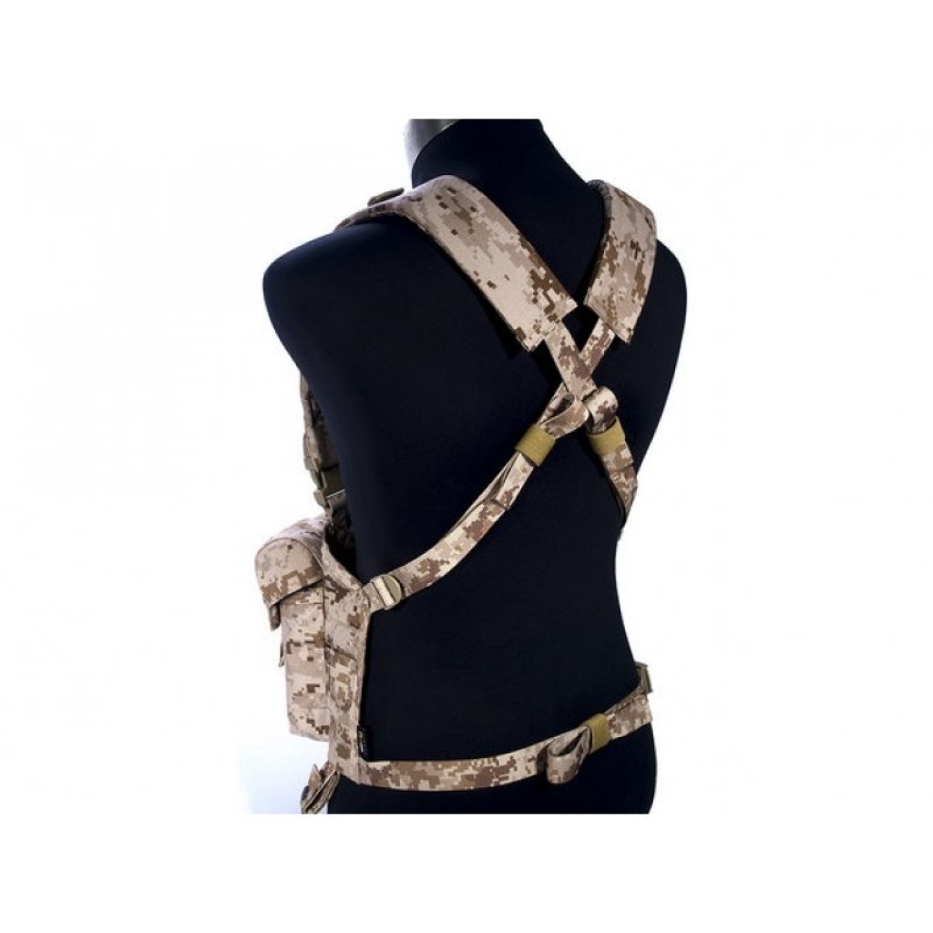 High quality LBT chest vest have 4 AK pouches in the front, eash pouch can hold 2 x AK magazines / 2 x G36 magazines. Constructed by Nylon. Constructed by INVISTA CORDURA.