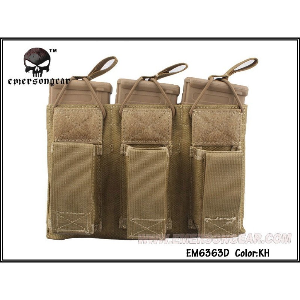 EMERSON 5.56&Pistol Triple Open Top Magazine Pouch (Khaki)
